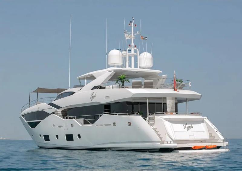 The Sunseeker 116 is a dynamic 35-meter (116ft) sport yacht in Dubai, designed for high-speed cruising with comfort. It features four finely detailed cabins and can host up to 8 overnight guests — making it ideal for private yacht rentals with a performance edge.